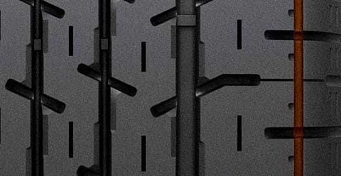 Results in more evenly distributed stress, leads to longer tread life and uniform wear under heavy loads.